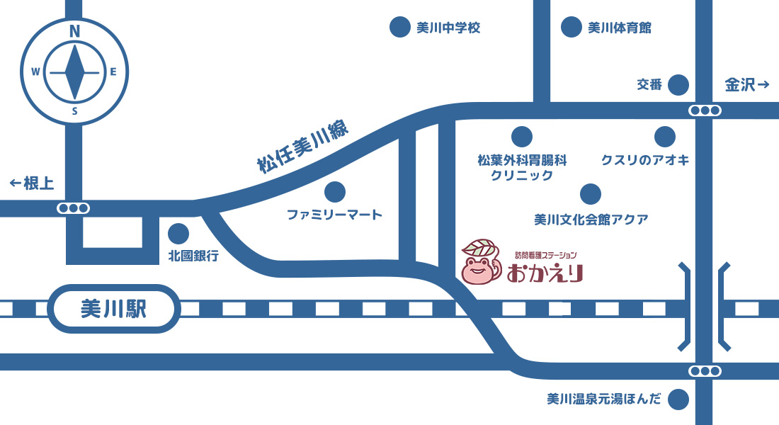 そのような思いをこめて、またステーションが所在する白山市美川地区の春祭りとして有名な「おかえり祭り」から名をいただき、「訪問看護ステーションおかえり」と名付けました。